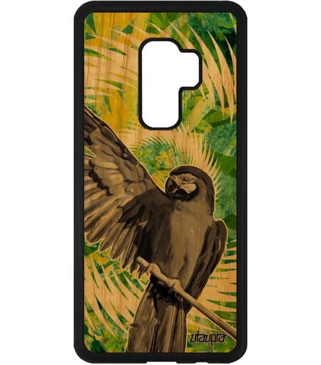 Coque Perroquet Galaxy S9 Plus En Bois Silicone Oiseau Nature Vert Smartphone Mandala Fleurs Perruche Motif Animal Portable Samsung