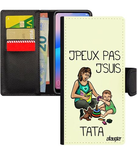 Coque Jpeux Pas J'suis Tata A9 2018 Cuir Portefeuille Noir Telephone Tante Bebe 4g Texte À Clapet Je Made In France Samsung Galaxy