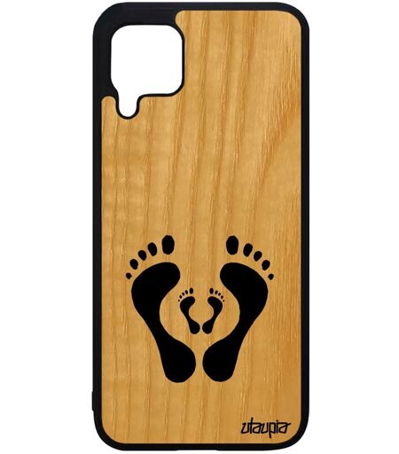 Coque Silicone Huawei P40 Lite En Bois Veritable Pied Artisanat Mobile Nova 7i De Luxe Noir Bebe Trace De Pas Famille Enfant Parent