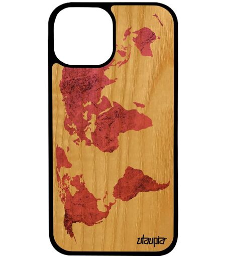 Coque Bois Naturel Carte Monde Iphone 13 Silicone Planete Rose Globe Housse Texture Artisanat Motif Etui Caoutchouc Rigide De