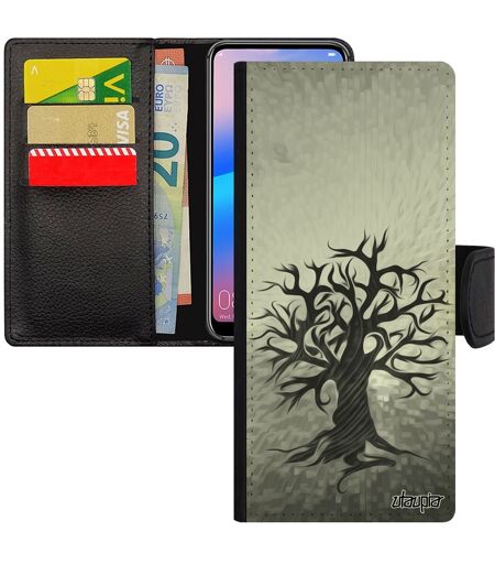Coque M13 Simili Cuir Peinture Arbre De Vie Motif Case Ecologie Mobile Ecolo Foret Gris Sm-M135m/Ds Cover Etui Nature Samsung Galaxy