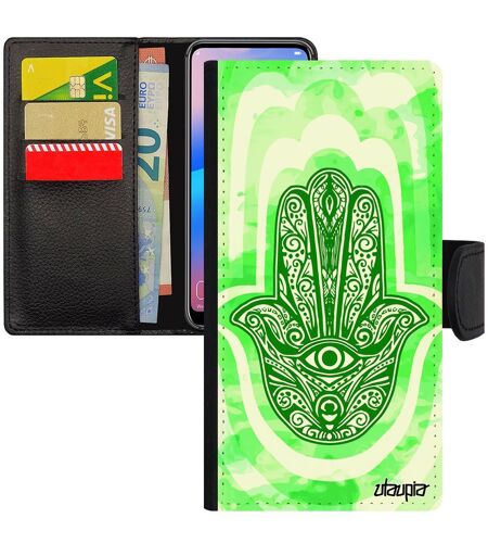 Coque Rabat Pour S23 Simili Cuir Portefeuille Porte Cartes Main De Fatma Sm-S911b/Ds Mobile Pu Symbole Cover œIl Vert Samsung Galaxy