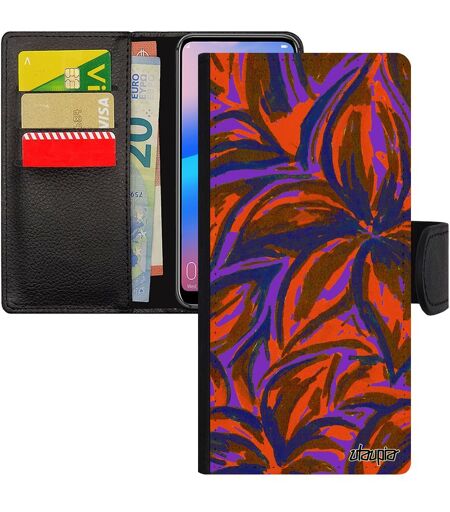 Coque S23+ Plus Porte Cartes Fleurs Smartphone Pu Design Housse Noir Bleu Original Feuille Nature Motif Floral Effet Samsung Galaxy