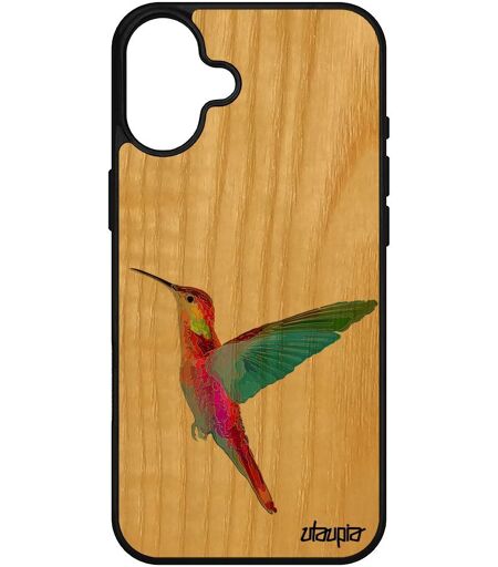 Coque Silicone Pour Iphone 16+ Plus En Bois Et Colibri Plumes Oiseau Animal Ecologie Portable Housse Nature Dessin 256 Go Animaux Apple