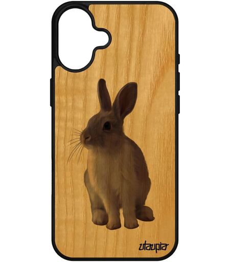 Coque Lapin Pour Apple Iphone 16+ Plus En Bois Et Silicone Smartphone Lièvre De Paques 128 Go Nain Noir Animaux Jolie Design Frêne Nature