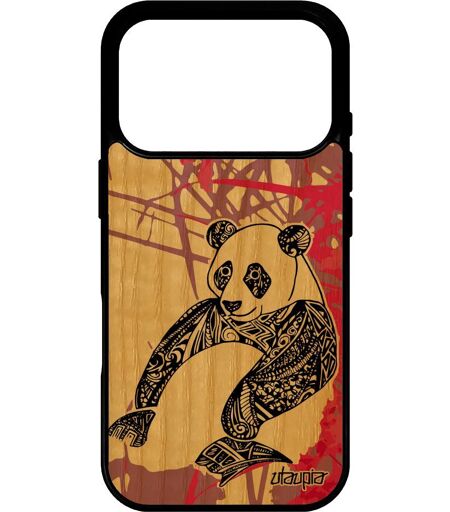 Coque Bois Naturel Pour Iphone 17 Pro Silicone Panda Ethnique Caoutchouc Housse Bumper Jolie Animal Nature Tribal Bebe Bamboo Rose