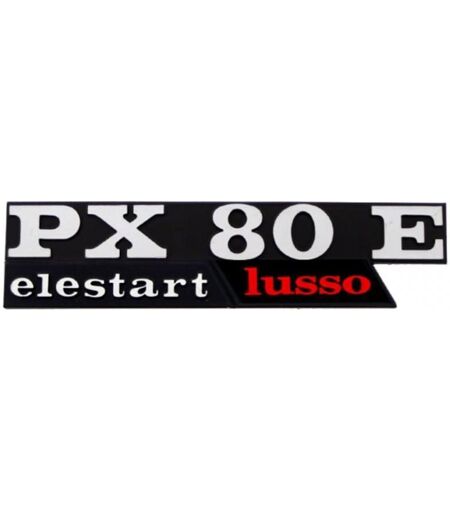 Emblème, logo "PX 80 E elestart lusso" de coque arrière neuf à clipser, coloris gris / noir / rouge. Dimensions : - Hauteur : 33mm. - Largeur : 130mm. En remplacement de la référence d'origine Piaggio 199365. Vendu à l'unité. Livré conforme à la photo. ...