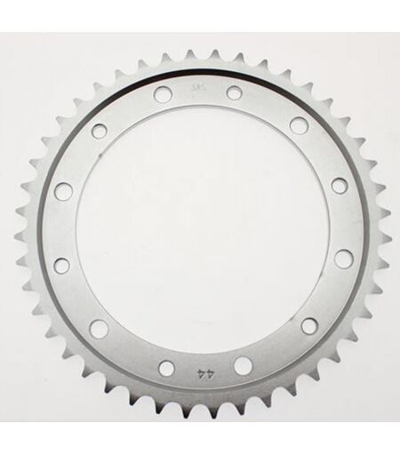 Couronne de transmission neuve en acier, 44 dents au pas 530, type 1340. Dimensions : - Diamètre intérieur 154mm - Épaisseur 9mm - 6 trous diamètre 8.5mm - 6 trous diamètre 10.5mm - Entre axe des trous 176mm. Livrée conforme à la photo. ...