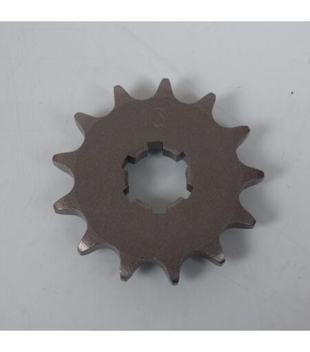 Pignon de sortie de boîte neuf type 416 en acier, équipé de 13 dents au pas de 428. Caractéristiques : - Nombre de dents : 13 dents - Pas : 428 - Diamètre entre cannelure : 20mm - Diamètre sur cannelures : 16mm - Largeur cannelure : 4mm - Épaisseur : 7.2mm - Déport : Non - Trou pour le capteur de vitesse: Non Vendu à l'unité. Livré conforme à la photo. ...