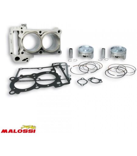 Kit cylindre piston maxi-scooter neuf de marque MALOSSI, modèle Super T-Max en aluminium traité nikasil, cylindrée 560cc. Le kit comprend : -Le bloc cylindre en aluminium traité nikasil -Deux pistons forgés Ø70mm -Deux axes de piston Ø15mm -Quatre clips d'axe de piston -Les segments -Les joints d'embase et de culasse -Deux joints de tendeur de distribution. La cylindrée de ce kit Super T-Max a été portée à 560cc en adoptant un alésage de 70mm et une course de 73mm. Le taux de compression passe à 12:1, et la puissance maximale est atteinte à 7800 tours/minute. Toutes ces évolutions ont été possibles grâce au savoir-faire Malossi, sans compromis sur la fiabilité, l'équilibre mécanique et thermique d'origine. ATTENTION : seulement pour moteur avec tendeur de chaîne de distribution hydraulique (génération 2004-2007). Usage réservé à la compétition. Tout ce qui est visible sur la ...