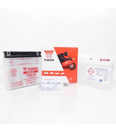 Batterie Yuasa acide conventionnelle au plomb neuve avec entretien vendue avec acide référence YB9-B. Caractéristiques: - Longueur: 137mm - Largeur: 76mm - Hauteur: 140mm - Tension: 12V - Capacité: 9Ah - CCA: 115A - Bornes + à gauche La batterie YUASA est très souvent utilisée en monte d'origine par les constructeurs. Elle est reconnue pour sa qualité et sa durée de vie exceptionnelle. Choisir Yuasa, c'est opter pour la tranquillité. Vendue à l'unité. Livrée conforme à la photo. ...