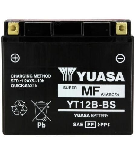 Batterie Yuasa acide conventionnelle au plomb neuve sans entretien vendue avec acide référence YT12B-BS. Caractéristiques: - Longueur: 150mm - Largeur: 70mm - Hauteur: 131mm - Tension: 12V - Capacité: 10Ah - CCA: 210A - Bornes + à gauche - Volume acide: 0.9L La batterie YUASA est très souvent utilisée en monte d'origine par les constructeurs. Elle est reconnue pour sa qualité et sa durée de vie exceptionnelle. Choisir Yuasa, c'est opter pour la tranquillité. Vendue à l'unité. Livrée conforme à la photo. ...