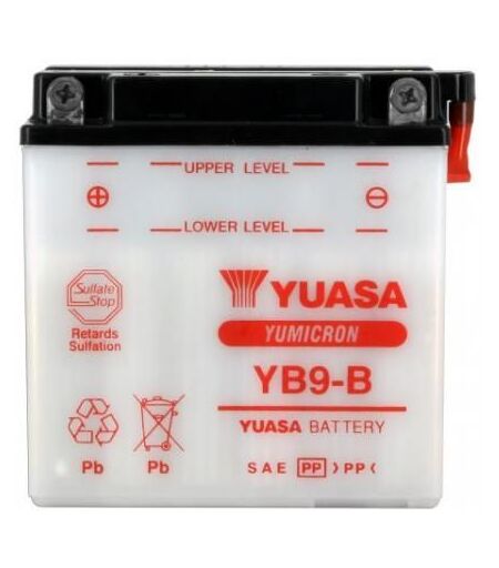 Batterie Yuasa acide conventionnelle au plomb neuve avec entretien vendue sans acide référence YB9-B. Caractéristiques: - Longueur: 137mm - Largeur: 76mm - Hauteur: 140mm - Tension: 12V - Capacité: 9Ah - CCA: 115A - Bornes + à gauche - Volume acide: 0.6L La batterie YUASA est très souvent utilisée en monte d'origine par les constructeurs. Elle est reconnue pour sa qualité et sa durée de vie exceptionnelle. Choisir Yuasa, c'est opter pour la tranquillité. Vendue à l'unité. Livrée conforme à la photo. ...