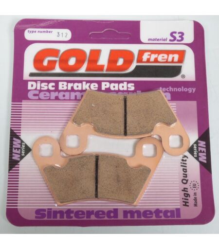 Plaquette de frein métal fritté GOLD Fren type 312 qualité S3 neuve. Dimensions: - Longueur: 96.6mm - Largeur: 50.5mm - Épaisseur: 6.8mm Vendues par paire. Livrées conforme à la photo. ...