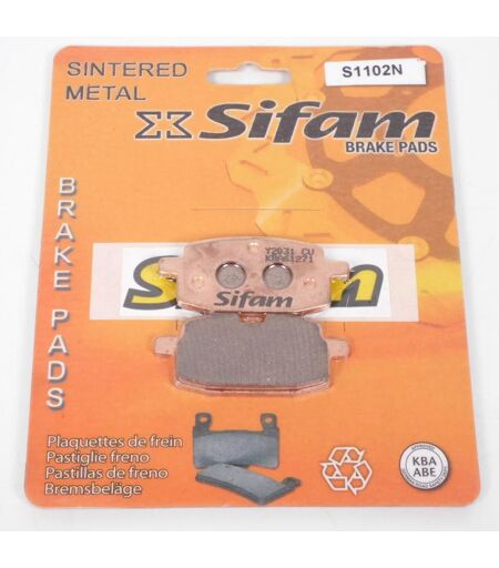 Plaquette de frein métal fritté sport neuve. Dimensions: - Longueur: 61mm - Largeur: 27mm - Épaisseur: 7.3mm 100% des plaquettes SIFAM sont de qualité "SINTERED METAL". Elles conviennent parfaitement aux motos puissantes. Performances de freinage stables et accrues pour les freins avant et arrière. Haut niveau de confort, longue durée de vie dans diverses conditions telles que les routes humides, les changements de températures. Elles disposent de la norme KBA/ABE. Cela signifie que les matériaux de friction répondent aux critères les plus stricts selon les normes Européenne. Vendue par paire. Livrée conforme à la photo. ...