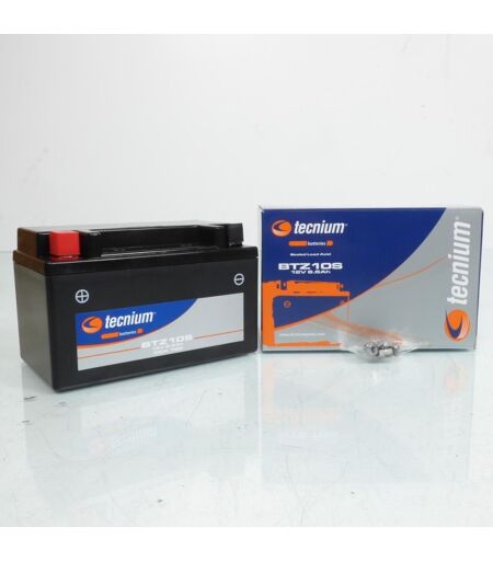 Batterie neuve de marque TECNIUM sans entretien activée usine prête à l'emploi vendue avec acide référence YTZ10S type SLA. Caractéristiques: - Longueur: 150mm - Largeur: 86mm - Hauteur: 95mm - Tension: 12V - Capacité: 8.6Ah - CCA: 190A - Bornes + à gauche Les batteries activées usine présentent toutes les caractéristiques des batteries sans entretien mais avec encore plus de puissance grâce à leur construction radiale et aux plaques additionnelles. Avantages: - Technologie VRLA (Valve Regulated Lead Acid). - Activée usine, pré-chargée, prête à l?emploi. - Cycle de vie supérieur (plus de 3 fois une batterie conventionnelle). - Facilité d?installation (aucun risque de déversement d?acide). - Haute puissance. - Aucun entretien. - Sans danger (pas de transport d?acide). - Montage multi-position (vertical ou horizontal). - Scellée, pas d?émission de gaz et de risque de ...