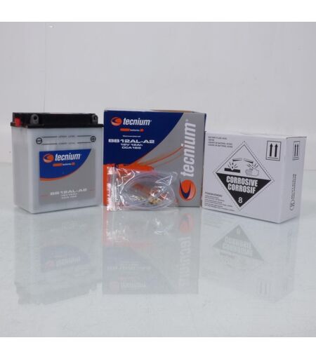Batterie Tecnium acide conventionnelle au plomb neuve avec entretien vendue avec acide référence YB12AL-A2. Caractéristiques: - Longueur: 135mm - Largeur: 81mm - Hauteur: 161mm - Tension: 12V - Capacité: 12Ah - CCA: 165A - Bornes + à droite - Volume acide: 0.78L Les batteries conventionnelles TECNIUM livrées avec pack acide doivent être remplies avant leur première utilisation. - Installation en position droite uniquement - Technologie acide-plomb, chargée à sec - Produit retardant la sulfatation - A manipuler avec précaution (acide) - Durée de vie normale Vendue à l unité. Livrée conforme à la photo. ...