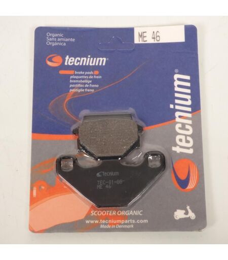 Plaquette de frein organique neuve de marque TECNIUM type ME46. Dimensions: - Longueur: 84.9mm - Largeur: 42.4mm - Épaisseur: 7.5mm - Longueur: 55.8mm - Largeur: 37mm - Épaisseur: 9.8mm Déclinées pour répondre aux besoins spécifiques de chaque discipline, les plaquettes TECNIUM garantissent l?équilibre parfait entre un freinage efficace et une durée de vie optimale. Performante dès les basses températures, elles sont un excellent compromis d?efficacité et de durabilité pour une utilisation loisir. Fabriquées au Danemark. Vendues par paire. Livrées conforme à la photo. ...