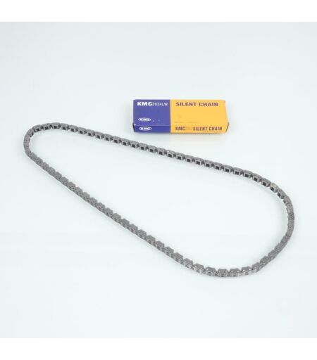 Chaîne silencieuse de distribution neuve type origine de marque KMC, équipée de 136 maillons. En remplacement de la référence d'origine Suzuki 12760-19F01-000. Vendue sertie (fermée). Livrée conforme à la photo. ...