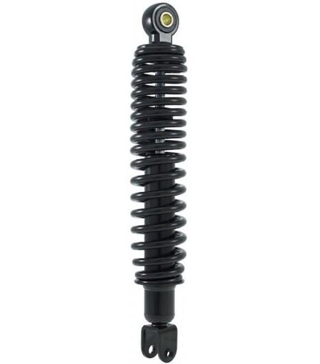 Amortisseur arrière hydraulique neuf de marque RMS, coloris noir. Caractéristiques : - Entre axe des points de fixation : 323mm environ - Largeur de la chape de fixation haute : 21mm - Diamètre du trou de fixation haute : 10mm. - Largeur de la chape de fixation basse : 21mm - Diamètre du trou de fixation basse : 8mm (filetage M8 au pas 125 standard non inversé). Vendu à l'unité. Livré conforme à la photo. ...