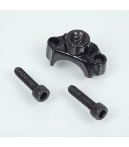 Demi cocotte supérieur, attache guidon, bride de serrage faisant office de support de rétroviseur neuve de marque RMS, en métal coloris noir. Prévue pour guidon diamètre 22mm. Cette bride est équipée d'un filetage M10 au pas 1.25 standard (non inversé), et de ses deux boulons de fixation filetage M6 au pas 1.00 standard (non inversé). L'entre axe des trous de fixation est de 32mm. Vendue à l'unité. Livrée conforme à la photo. ...