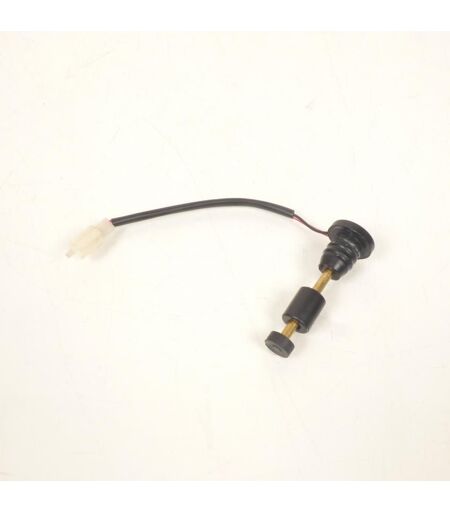 Jauge de niveau de réservoir d'huile d'occasion en caoutchouc de coloris noir. Cette jauge est équipée d'un connecteur à deux broches. Dimensions: - Diamètre extérieur de la partie cylindrique au niveau de l'emboitement dans le réservoir: 20mm. - Longueur totale de la jauge hors fil: 89mm - Longueur du fil: 190mm Cette jauge convient aux véhicules dont le numéro de série commence par VA4B24009GB. Vendue à l'unité. Livrée conforme à la photo. ...