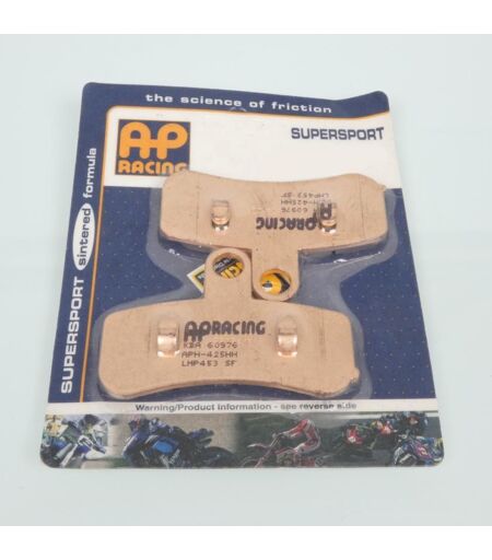Plaquettes de frein métal fritté neuves de marque AP Racing référence LMP453 SF type Supersport. Ces plaquettes sont tout particulièrement préconisées pour un montage à l'avant. Dimensions : - Longueur : 88.6mm - Largeur : 61.8mm - Épaisseur : 8mm. Type Supersport : très bonnes performances à chaud comme à froid, bonne durée de vie. Utilisation sportive sur route. Prévues pour disques acier ou inox. Vendues par paire. Livrées conformes à la photo. ...