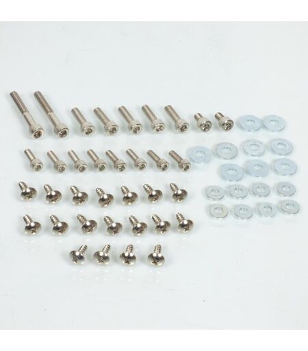 Kit visserie de carrosserie neuf adaptable de marque Replay en acier coloris gris. Ce kit visserie comprend : - Deux vis BTR M6 x 40mm - Cinq vis BTR M6 x 20mm - Deux vis BTR M6 x 10mm - Huit vis BTR M5 x 15mm - Dix huit vis cruciformes Ø5mm x 15mm Livré conforme à la photo. ...