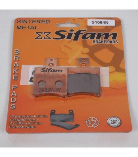 Plaquette de frein métal fritté sport neuve. Dimensions: - Longueur: 39.7mm - Largeur: 54mm - Épaisseur: 6.6mm 100% des plaquettes SIFAM sont de qualité "SINTERED METAL". Elles conviennent parfaitement aux motos puissantes. Performances de freinage stables et accrues pour les freins avant et arrière. Haut niveau de confort, longue durée de vie dans diverses conditions telles que les routes humides, les changements de températures. Elles disposent de la norme KBA/ABE. Cela signifie que les matériaux de friction répondent aux critères les plus stricts selon les normes Européenne. Vendue par paire. Livrée conforme à la photo. ...