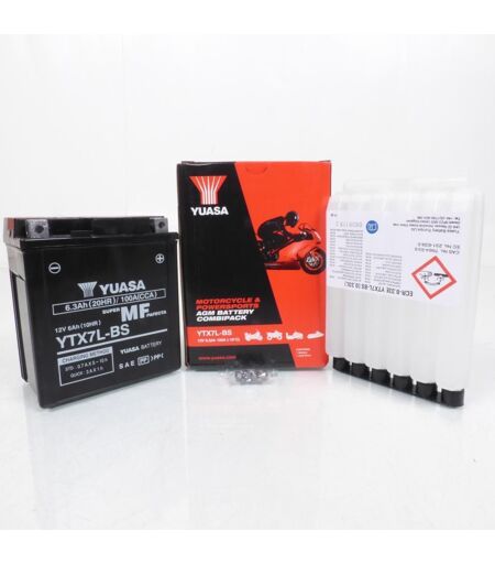 Batterie Yuasa acide conventionnelle au plomb neuve sans entretien vendue avec acide référence YTX7L-BS. Caractéristiques: - Longueur: 114mm - Largeur: 71mm - Hauteur: 131mm - Tension: 12V - Capacité: 6Ah - CCA: 100A - Bornes + à droite - Volume acide: 0.33L La batterie YUASA est très souvent utilisée en monte d'origine par les constructeurs. Elle est reconnue pour sa qualité et sa durée de vie exceptionnelle. Choisir Yuasa, c'est opter pour la tranquillité. Vendue à l'unité. Livrée conforme à la photo. ...