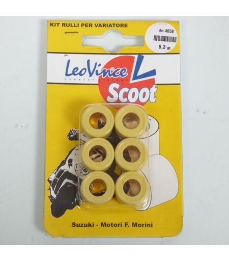 kit galet rouleau de variateur neuf de marque Leovince. Caractéristiques: - Diamètre extérieur: 17mm - Largeur: 12mm - Poids: 6.3 grammes - Coloris: jaune Vendu par 6 unités. Livré conforme à la photo. ...