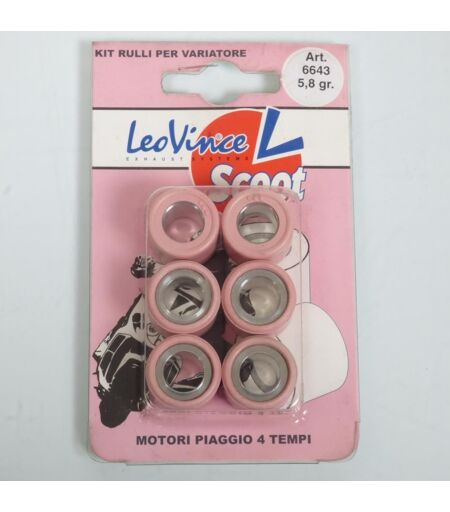 kit galet rouleau de variateur neuf de marque Leovince. Caractéristiques: - Diamètre extérieur: 19mm - Largeur: 17mm - Poids: 5.8 grammes - Coloris: rose Vendu par 6 unités. Livré conforme à la photo. ...