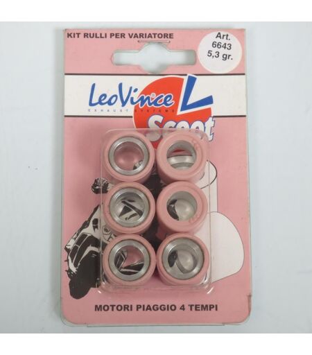 kit galet rouleau de variateur neuf de marque Leovince. Caractéristiques: - Diamètre extérieur: 19mm - Largeur: 17mm - Poids: 5.3 grammes - Coloris: rose Vendu par 6 unités. Livré conforme à la photo. ...