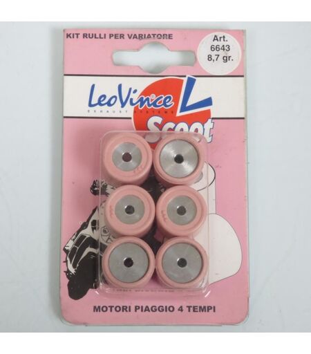 kit galet rouleau de variateur neuf de marque Leovince. Caractéristiques: - Diamètre extérieur: 19mm - Largeur: 17mm - Poids: 8.7 grammes - Coloris: rose Vendu par 6 unités. Livré conforme à la photo. ...