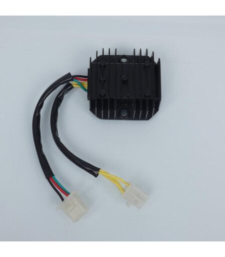 Régulateur de tension 12V neuf de marque P2R. Dimensions totales hors tout : - Largeur 79mm. - Longueur 81mm. - Épaisseur 31mm. - Diamètre des trous de fixation 6.5mm. - Entre axe des trous de fixation 65mm. Ce régulateur est équipé des connexions suivantes : - Un connecteur 3 cosses femelles plates (couleurs des fils : jaune). - Un connecteur 3 cosses femelles plates (couleurs des fils : rouge, vert, noir). Vendu à l'unité sans la visserie. Livré conforme à la photo. ...