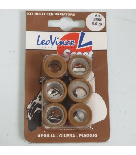 kit galet rouleau de variateur neuf de marque Leovince. Caractéristiques: - Diamètre extérieur: 20mm - Largeur: 17mm - Poids: 5.0 grammes - Coloris: marron Vendu par 6 unités. Livré conforme à la photo. ...