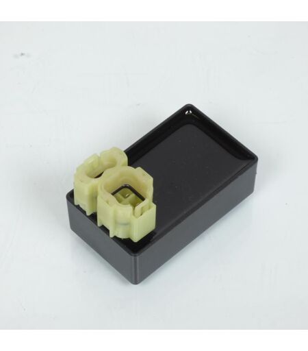 Bloc CDI neuf adaptable équipé d'un connecteur à deux broches et d'un connecteur à quatre broches. Prévu pour scooter chinois 50cc équipé d'un moteur 2 temps. Dimensions: - Longueur: 66mm - Largeur: 38mm - Épaisseur: 23.5mm - Épaisseur avec connecteur: 44mm Livré conforme à la photo. ...