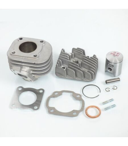 Kit haut moteur (cylindre, piston, culasse) neuf de marque Giraudo en aluminium comprenant: - Un cylindre 6 transferts Ø39.97mm (équipé de boosters à l'échappement) - Un piston mono segment - Un axe de piston (Ø10mm x 33mm) - Deux clips d'axe de piston - Une culasse haute compression - Un Joint de culasse - Un Joint de cylindre (embase) - Un Joint de pot d'échappement Prévu pour scooter équipé de moteur à refroidissement par air. Vendu à l'unité. Livré conforme à la photo. ...