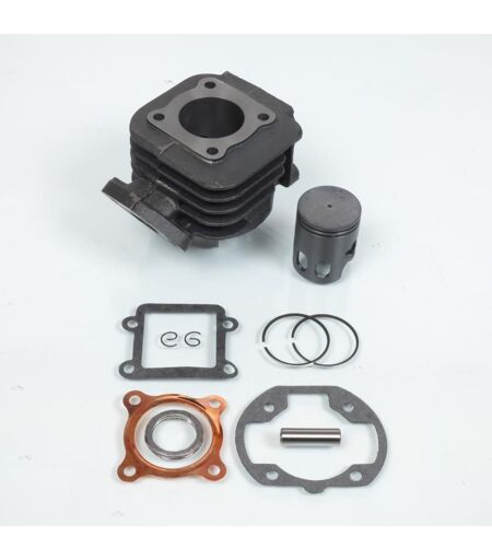 Kit cylindre piston fonte neuf de marque TNT. Ce kit comprend cylindre fonte, piston aluminium, axe, clips, segments de piston, joint embase bas cylindre, joint de culasse et joint de pot d'échappement. Il convient aux moteurs 2 temps à moteur MINARELLI Vertical refroidissement air. Vendu à l'unité. Livré conforme à la photo. ...