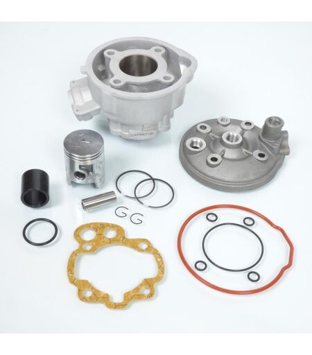 Kit haut moteur neuf en aluminium de marque Carenzi diamètre 40.3mm pour moteur Minarelli AM6. Contenu du kit: - La culasse - Le cylindre - Le piston - Deux segments - L'axe de piston Ø12mm - Deux clips d'axe de piston - Les joints d'embase et de culasse - Un joint de pot d'échappement - La bague en métal de réduction de sortie de cylindre Tout ce qui est fourni est visible sur la photo. Les goujons d'origine sont à conserver. Vendu à l'unité. Livré conforme à la photo. ...