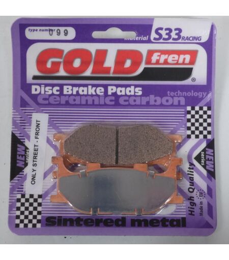 Plaquette de frein métal fritté GOLD Fren type 099 qualité S33 Racing neuve. Vendues par paire. Livrées conforme à la photo. ...