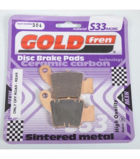 Paire plaquettes de frein métal fritté Gold Fren type 364 qualité S33 Racing neuve. Vendues par paire. Livrées conforme à la photo. ...