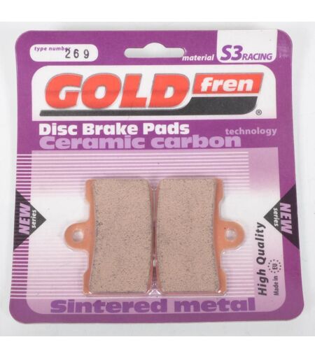 Plaquette de frein métal fritté GOLD Fren type 269 qualité S3 neuve. Vendues par paire. Livrées conforme à la photo. ...