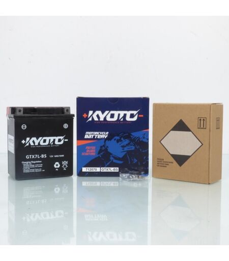 Batterie Kyoto acide conventionnelle au plomb neuve sans entretien vendue avec acide référence YTX7L-BS. Caractéristiques: - Longueur: 114mm - Largeur: 71mm - Hauteur: 131mm - Tension: 12V - Capacité: 6Ah - CCA: 85A - Bornes + à droite - Volume acide: 0.37L Cette batterie offre un excellent rapport Qualité/Prix. Elle est facile à mettre en place. Une notice d'utilisation est fournie. Vendue à l'unité. Livrée conforme à la photo. ...