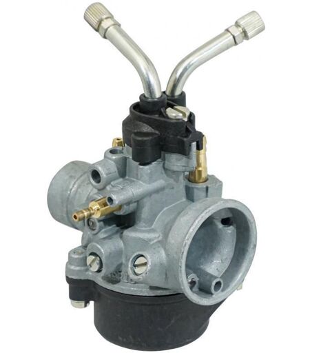 Carburateur DELLORTO PHBN 16 FS neuf montage souple prévu pour un starter à câble avec prise de dépression et graissage séparé sans réchauffage. Dimensions: - Diamètre extérieur coté admission: 24mm - Diamètre extérieur coté boite à air: 35mm - Longueur du carburateur entre boite à air et pipe d'admission: 76mm Vendu à l'unité coudes et système de starter à câble. Livré conforme à la photo. ...