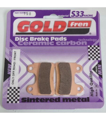 Paire plaquettes de frein métal fritté Gold Fren type 198 qualité S33 neuve. Vendues par paire. Livrées conforme à la photo. ...
