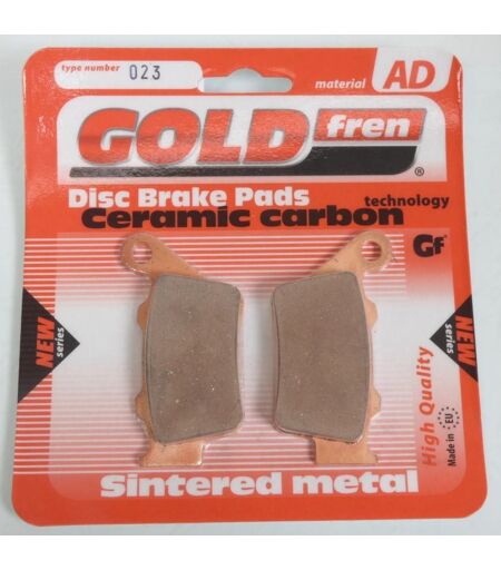 Plaquette de frein métal fritté GOLD Fren type 023 qualité AD neuve. Vendues par paire. Livrées conforme à la photo. ...