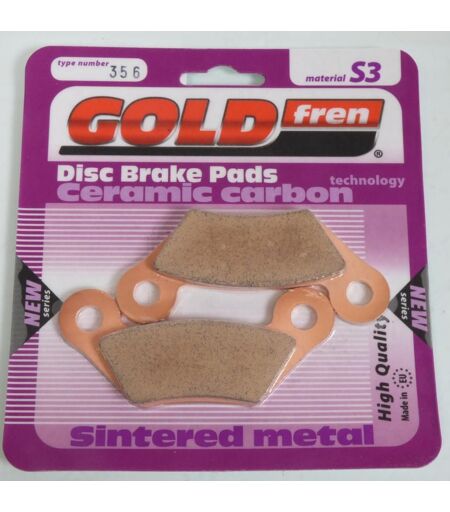 Paire plaquettes de frein métal fritté Gold Fren type 356 qualité S3 neuve. Vendues par paire. Livrées conforme à la photo. ...