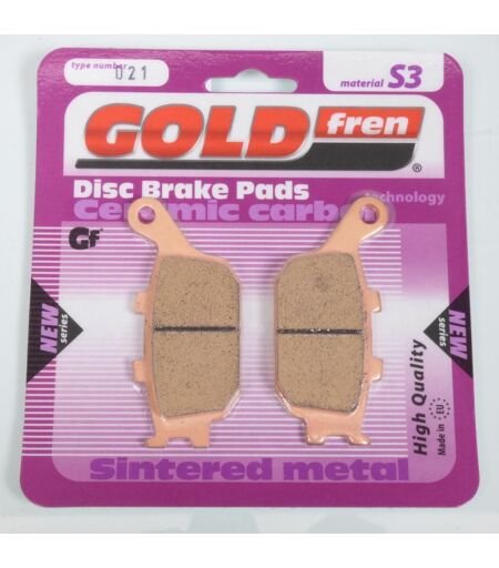 Plaquette de frein métal fritté GOLD Fren type 021 qualité S3 Racing neuve. Dimensions: - Longueur: 85.7mm - Largeur: 40mm - Épaisseur: 8.9mm Vendues par paire. Livrées conforme à la photo. ...