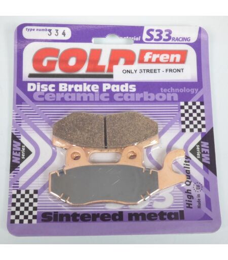 Plaquette de frein métal fritté GOLD Fren type 334 qualité S33 Racing neuve. Dimensions: - Longueur: 77mm - Largeur: 42.7mm - Épaisseur: 7.5mm - Longueur 2: 97mm - Largeur 2: 42.7mm - Épaisseur 2: 7.5mm Vendues par paire. Livrées conforme à la photo. ...
